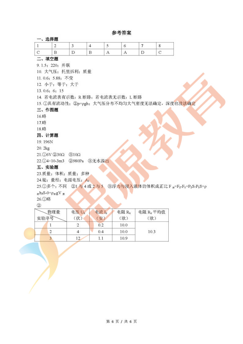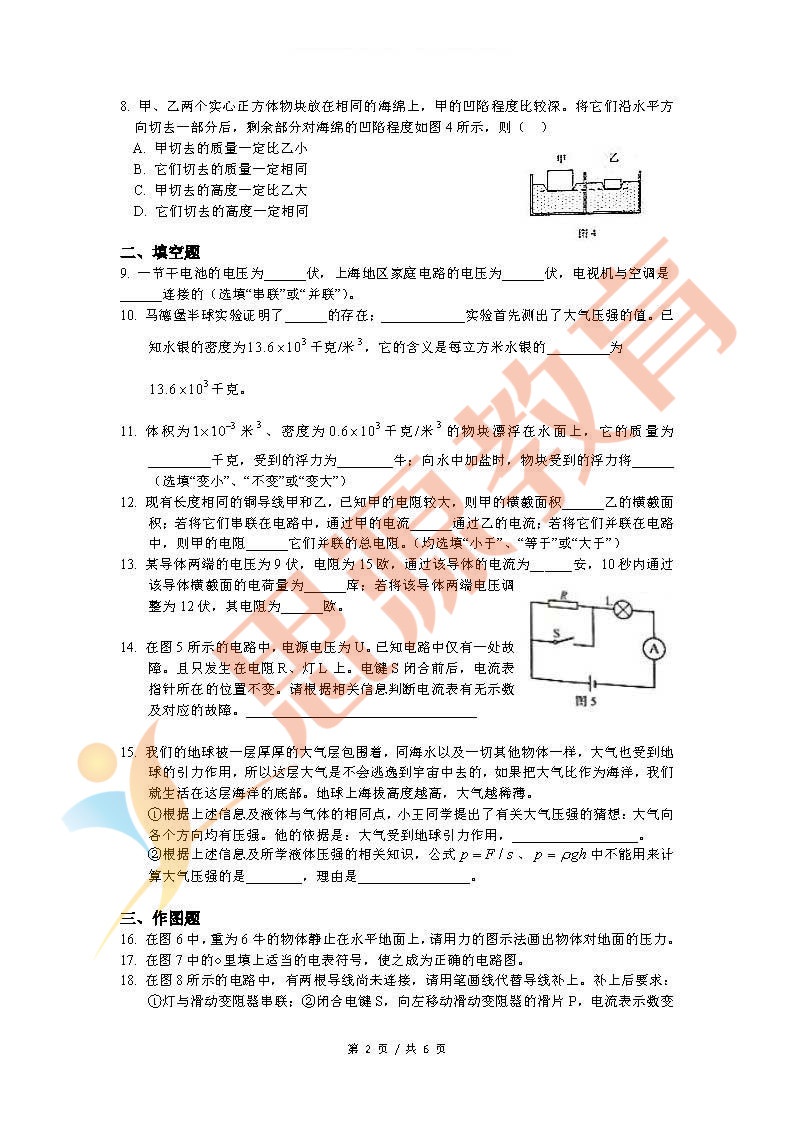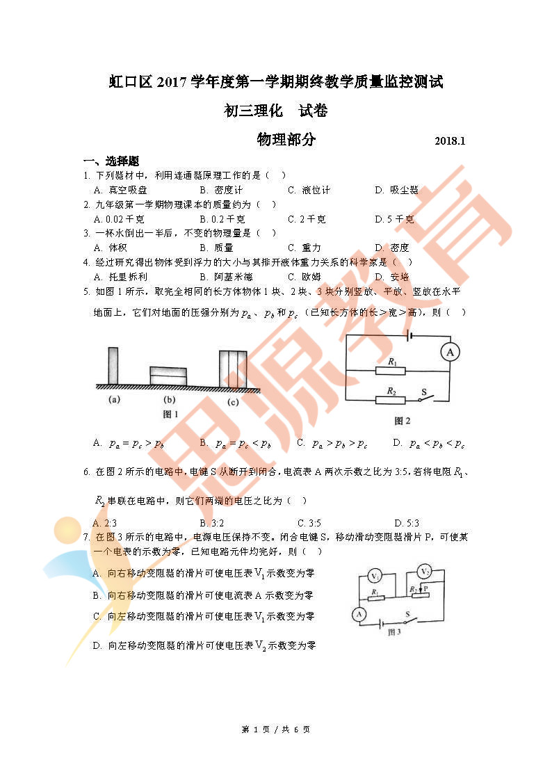 2018虹口区上海一模考开考,物理和化学已经考完,思源教育小编第一时间整理了物理考卷的真题和答案解析,分享给大家。其他区的同学们可以参考虹口区的考点和难度,最之后的冲刺复习。
