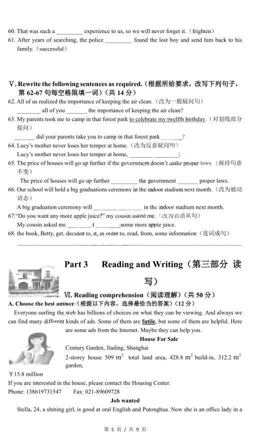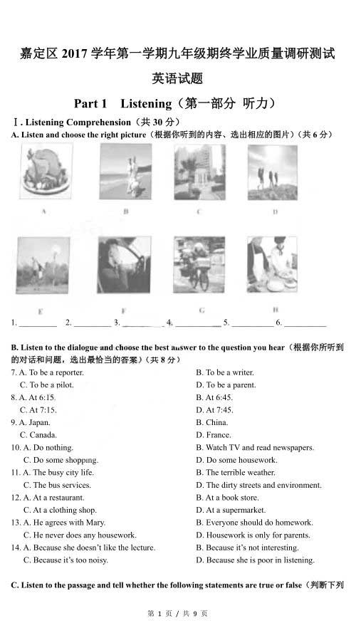 2018嘉定区上海一??伎迹荚唇逃”嗟谝皇奔湔砹擞⒂锟季淼恼嫣夂痛鸢附馕?,分享给大家。其他区的同学们可以参考嘉定区的考点和难度,最之后的冲刺复习。