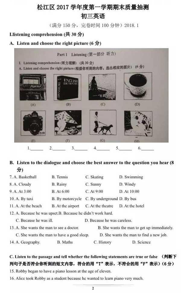 2018上海松江区一模考开考,思源教育小编第一时间整理了英语考卷的真题和答案解析,分享给大家。其他区的同学们可以参考松江区的考点和难度,做最后的冲刺复习。