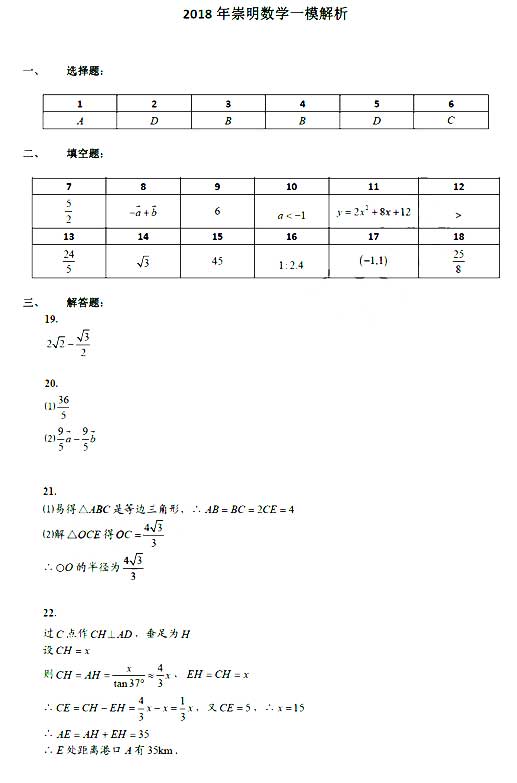 2018上海崇明区一??伎迹荚唇逃”嗟谝皇奔湔砹耸Э季淼恼嫣夂痛鸢附馕?,分享给大家。其他区的同学们可以参考崇明区的考点和难度,做最后的冲刺复习。