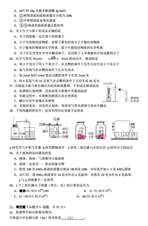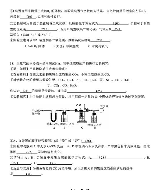 2018上海金山区一??伎?,思源教育小编第一时间整理了化学考卷的真题和答案解析,分享给大家。其他区的同学们可以参考金山区的考点和难度,做最后的冲刺复习。