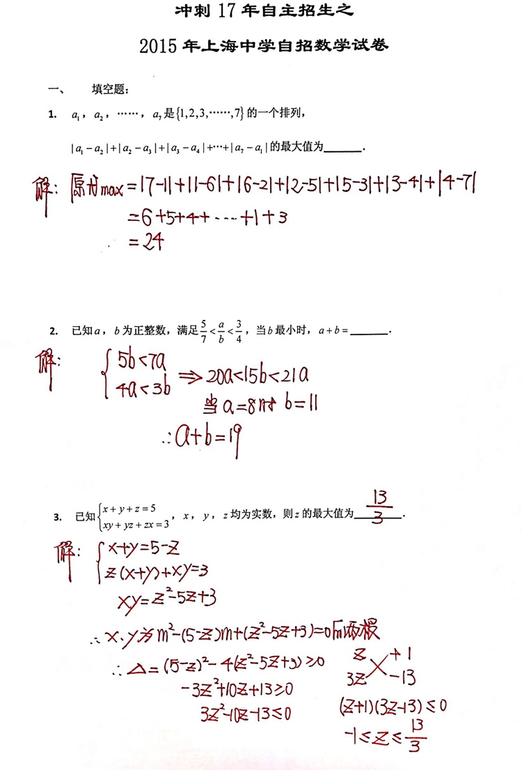 四大名校八大金刚,作为上海最好的高中学校。一直备受追捧和关注。一模考后,很多“牛蛙”就将全力冲刺自招考,思源教育小编整理近几年名校的自招考真题,希望能够对大家的复习有所帮助,今天给大家带来的是 2016上海中学自招考数学卷试题与解析。